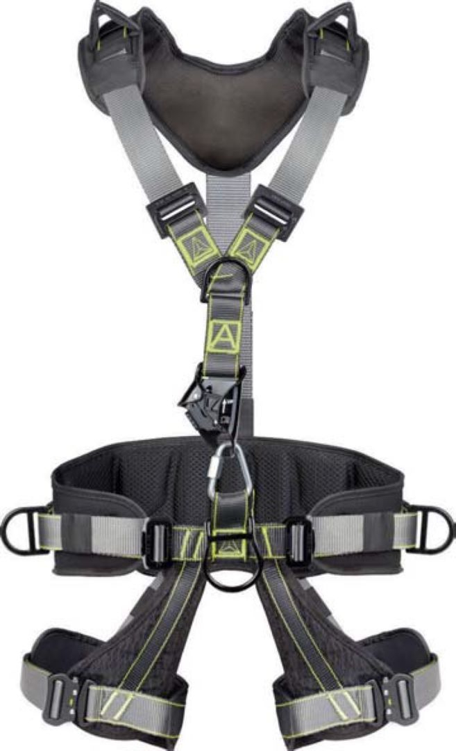 -Centură de șezut și de poziționare cu spătar și chingi pentru coapse termoformate. Rotație 120°. 2 puncte de prindere pentru poziționare în timpul lucrului (lateral). 1 punct de prindere de reținere (spate). 1 punct de suspensie (ventral). 1 dispozitiv ventral de blocare pentru accesul pe coardă. Căptușeală termoformată pe umeri și la chinghile pentru coapse.